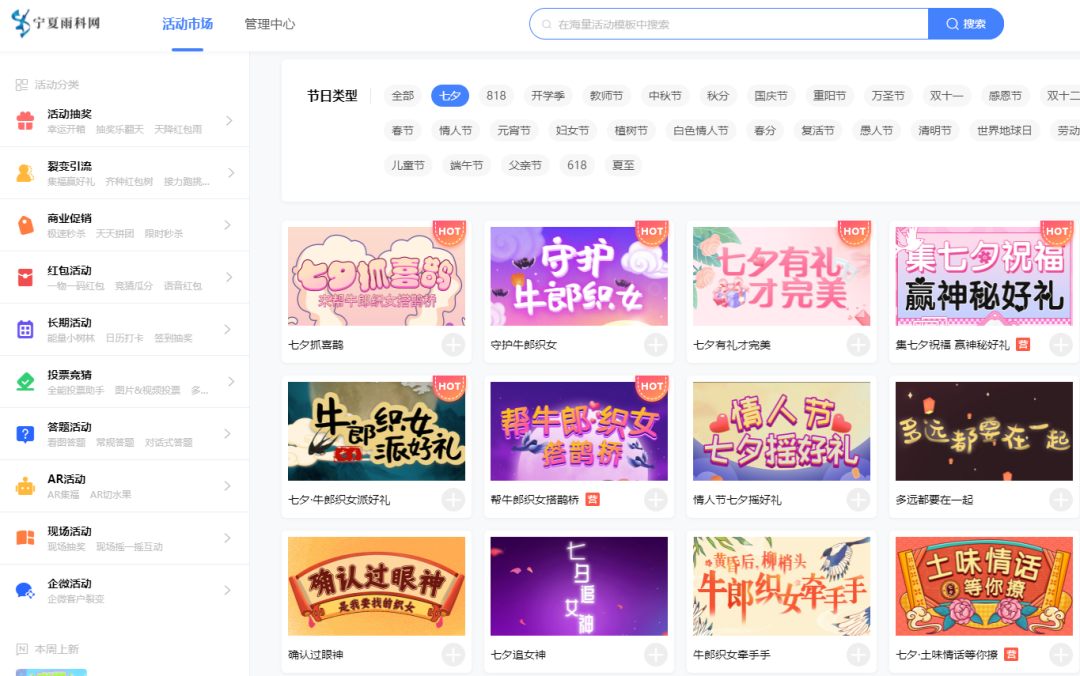 各种小游戏、答题、投票、直接抽奖、裂变助力、养成兑奖、集卡、拼团秒杀促销等形式;后台现成精美节日互动模板直接使用,根据营销所需灵活设置各功能规则、游戏时长/标题/介绍等。